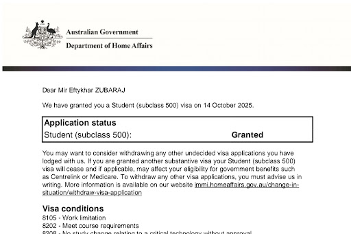 I’m really grateful to Aussie Immi & Education Consultancy for their amazing support throughout my student visa process. They guided me at every step and were always responsive whenever I needed help. The team provided excellent support in preparing my financial documents, arranging health insurance, and completing asset evaluations, which helped me get my visa in a very short time. AIEC truly helped me make my dream come true, and I’m really thankful to them. My experience with them was smooth and stress-free. They are trustworthy, professional, and caring. I highly recommend them to anyone planning to apply for an Australian student visa.